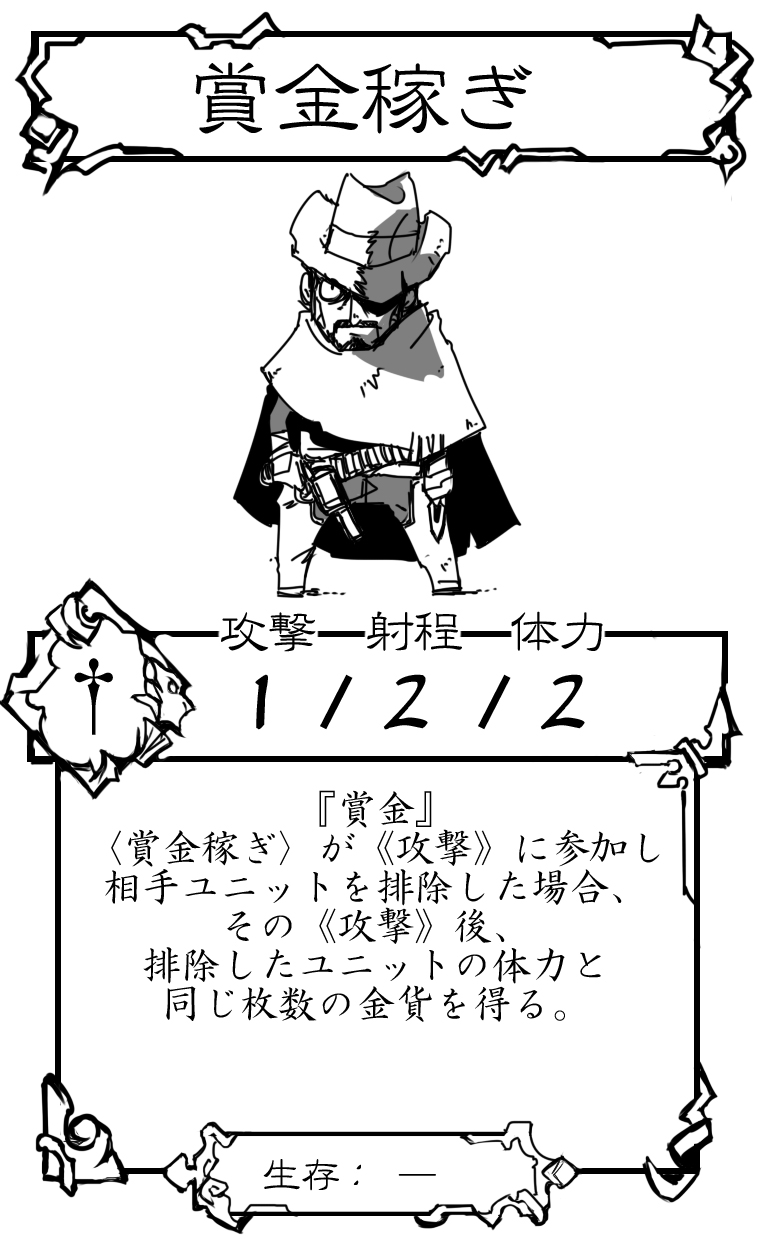 〈賞金稼ぎ〉…排除したユニットの体力と同じ枚数の金貨を得る。