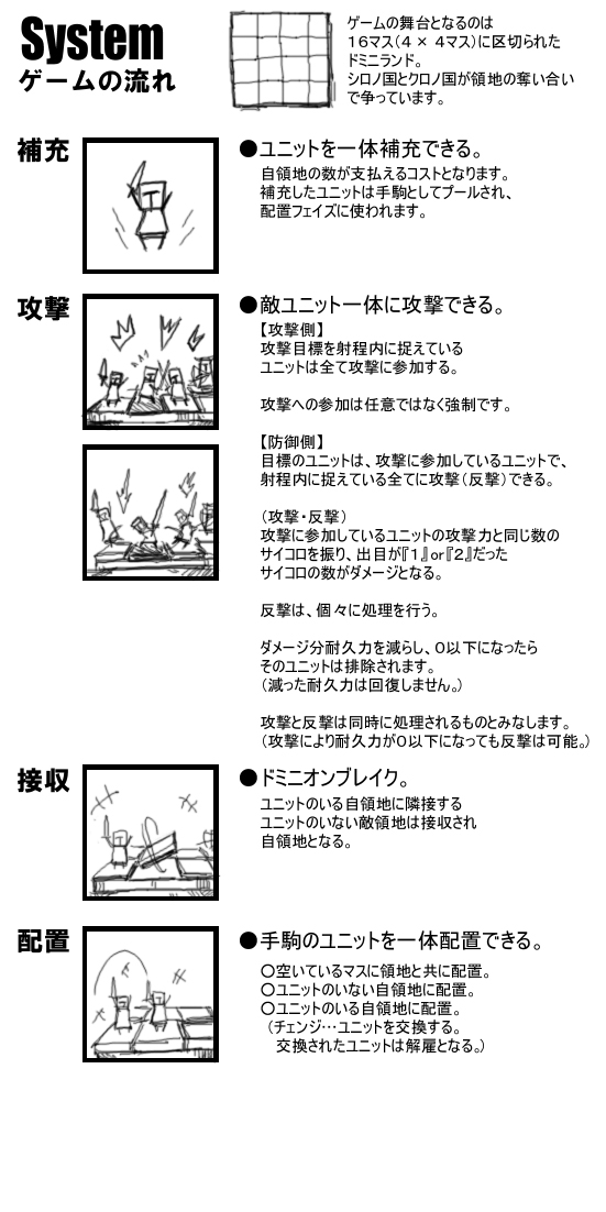 代わりに以前の配置フェイズにあったブレイク(ユニットのいる自領地に隣接するユニットのいない敵領地を奪える)を正式な接収システムとして採用し、これを『ドミニオンブレイク』とします。