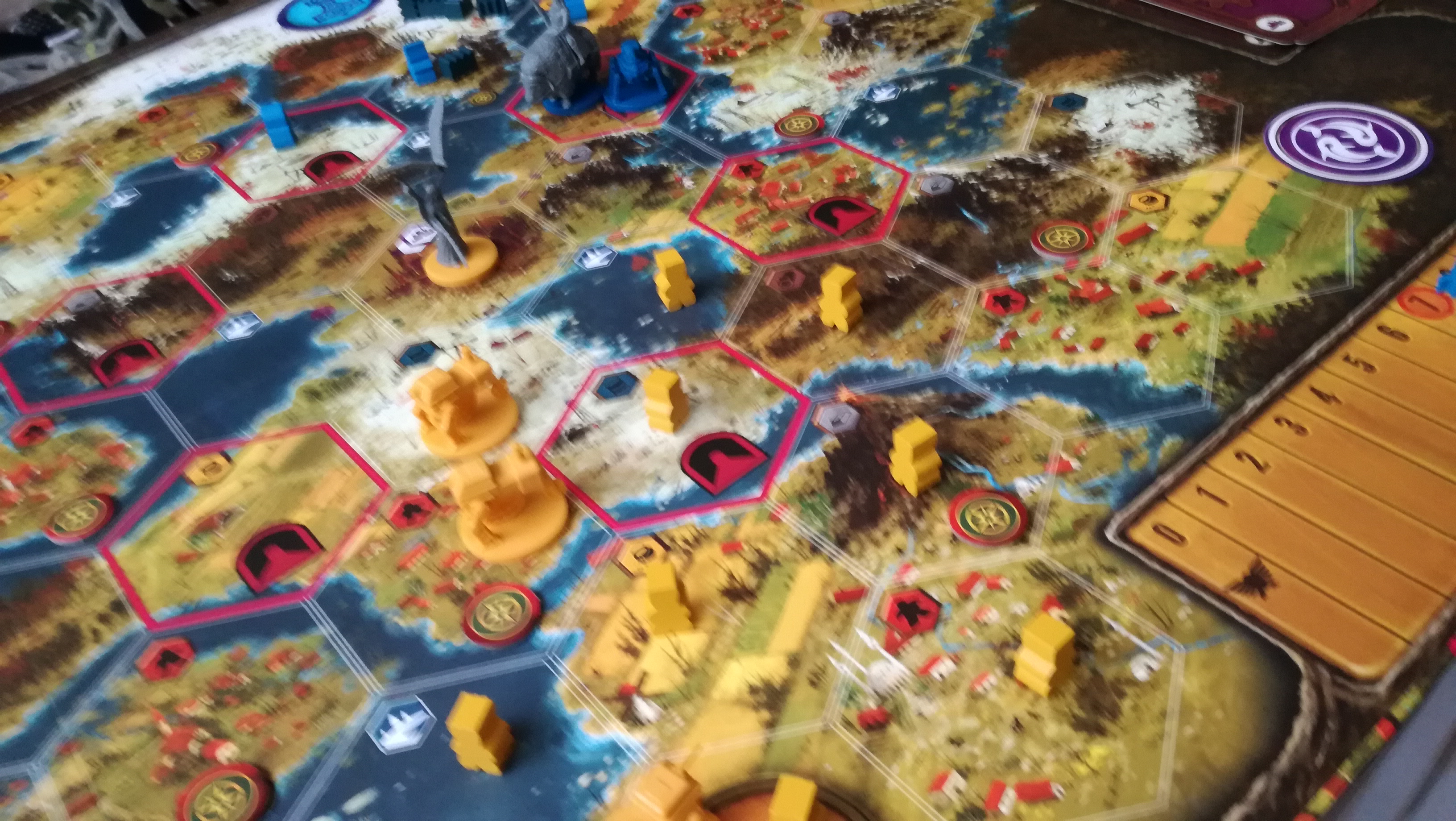 他にも徴兵の継続ボーナス(自分の手番)忘れ、完遂した下段アクションの付随ボーナスがもらえるルール忘れ、オートマの移動の処理…などなどルールミスは多々ありました。