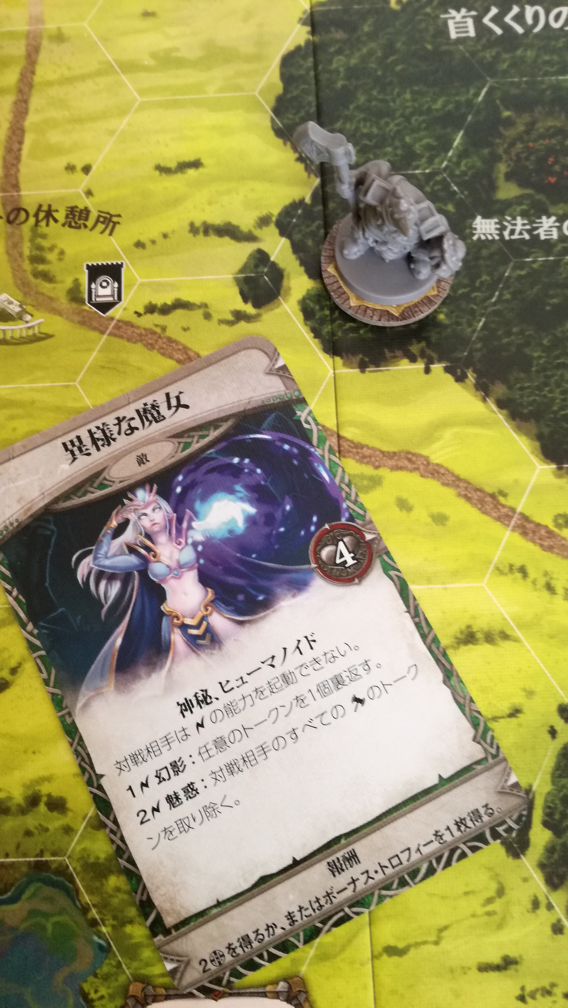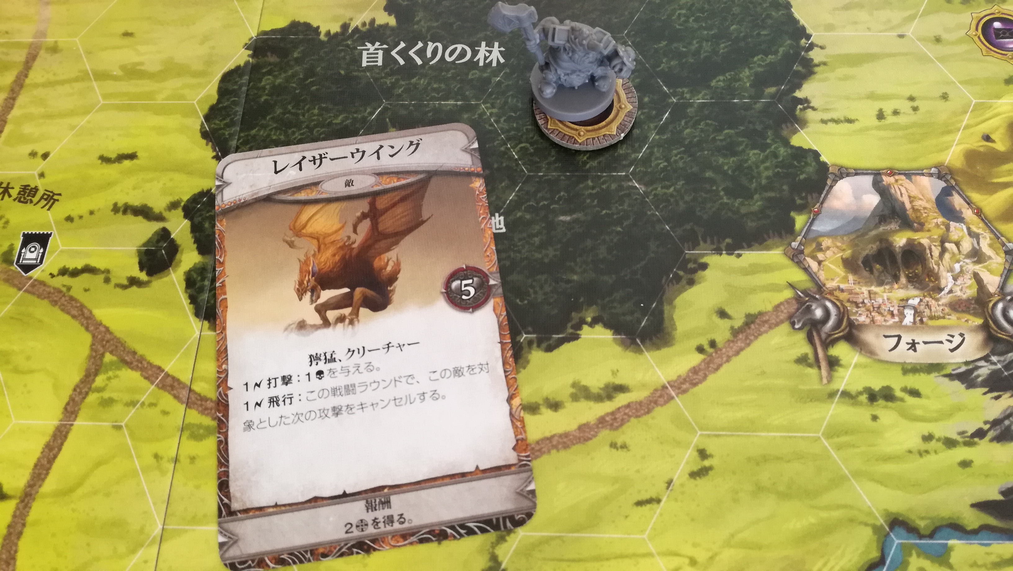 最期にコービンの『波動(波?稲妻?マークのやつ)』能力『蛮勇の攻撃』を使用して、オーガに1点のダメージを与えます。