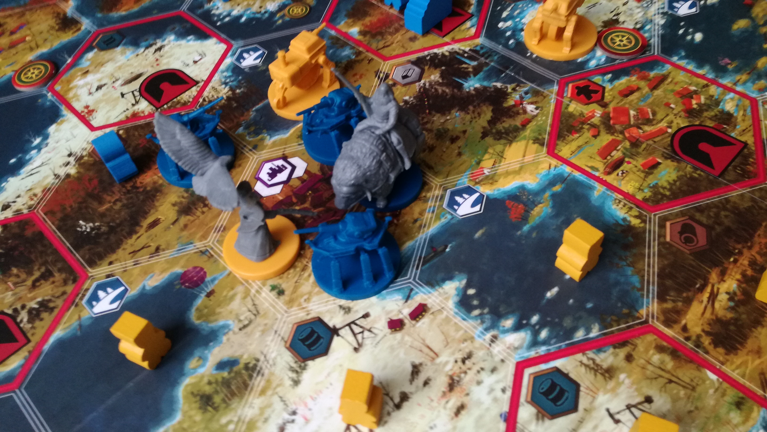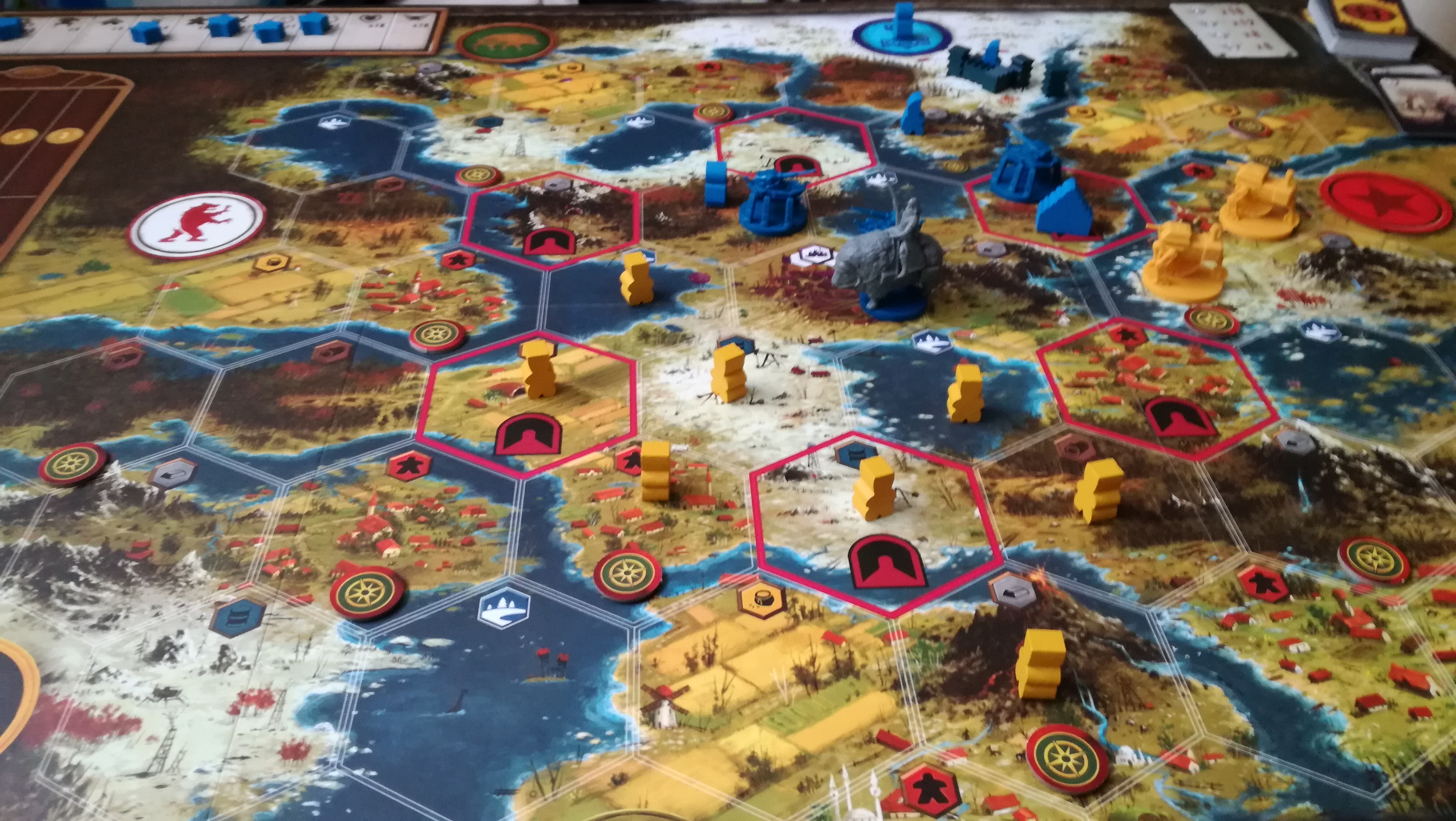 他にも徴兵の継続ボーナス(自分の手番)忘れ、完遂した下段アクションの付随ボーナスがもらえるルール忘れ、オートマの移動の処理…などなどルールミスは多々ありました。