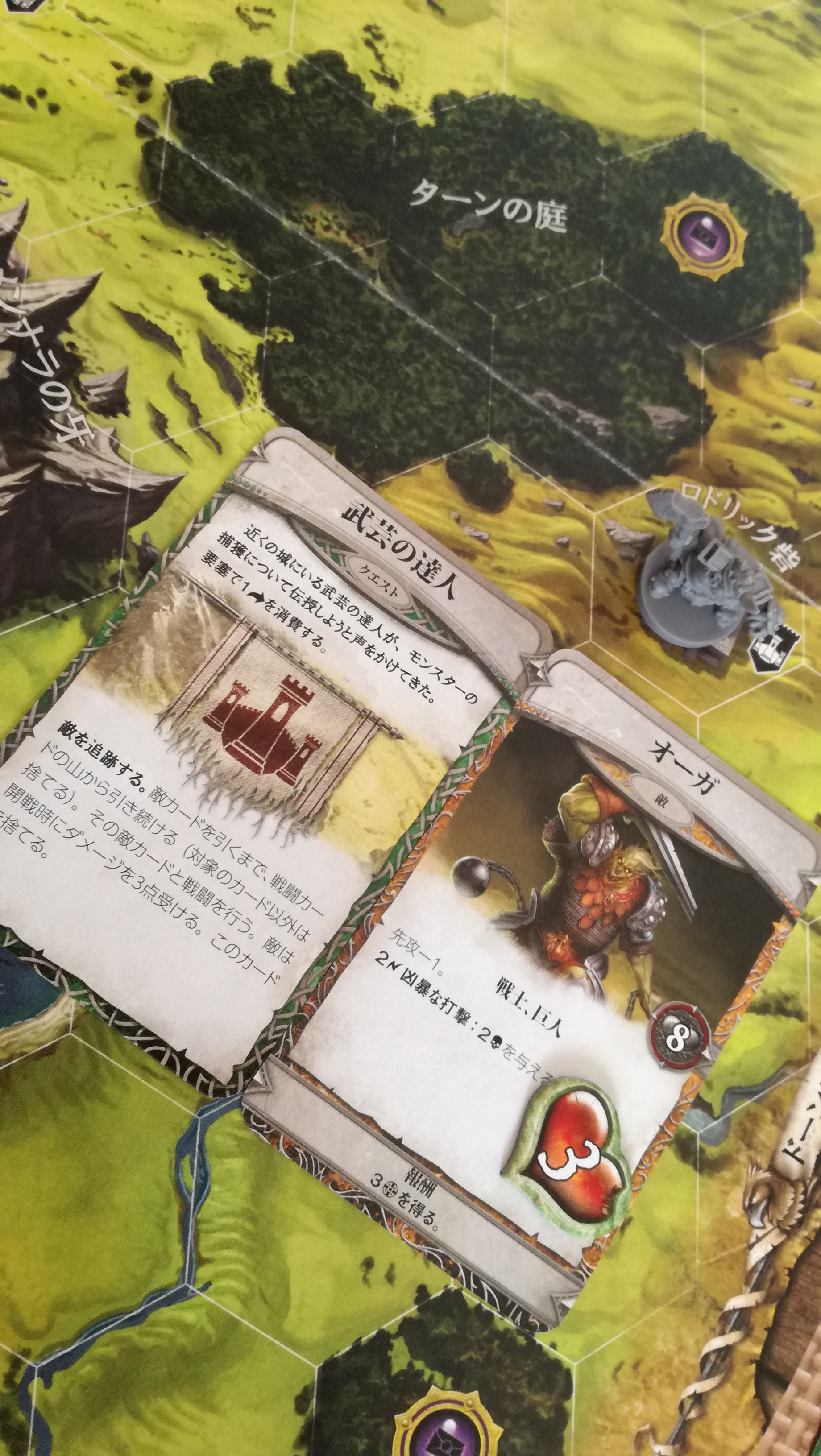 引いたのは『オーガ』なかなかの強敵ですが、クエストの効果で『体力-3』されているので…