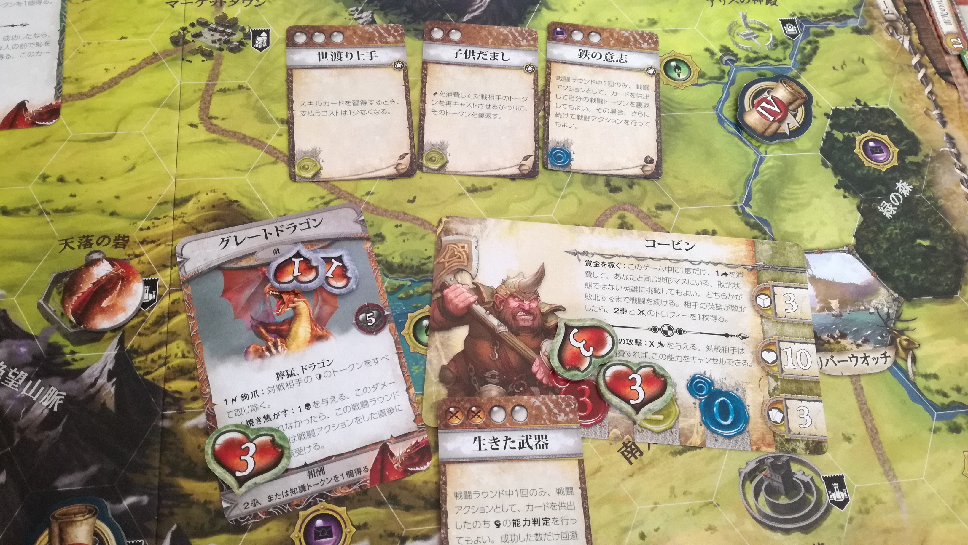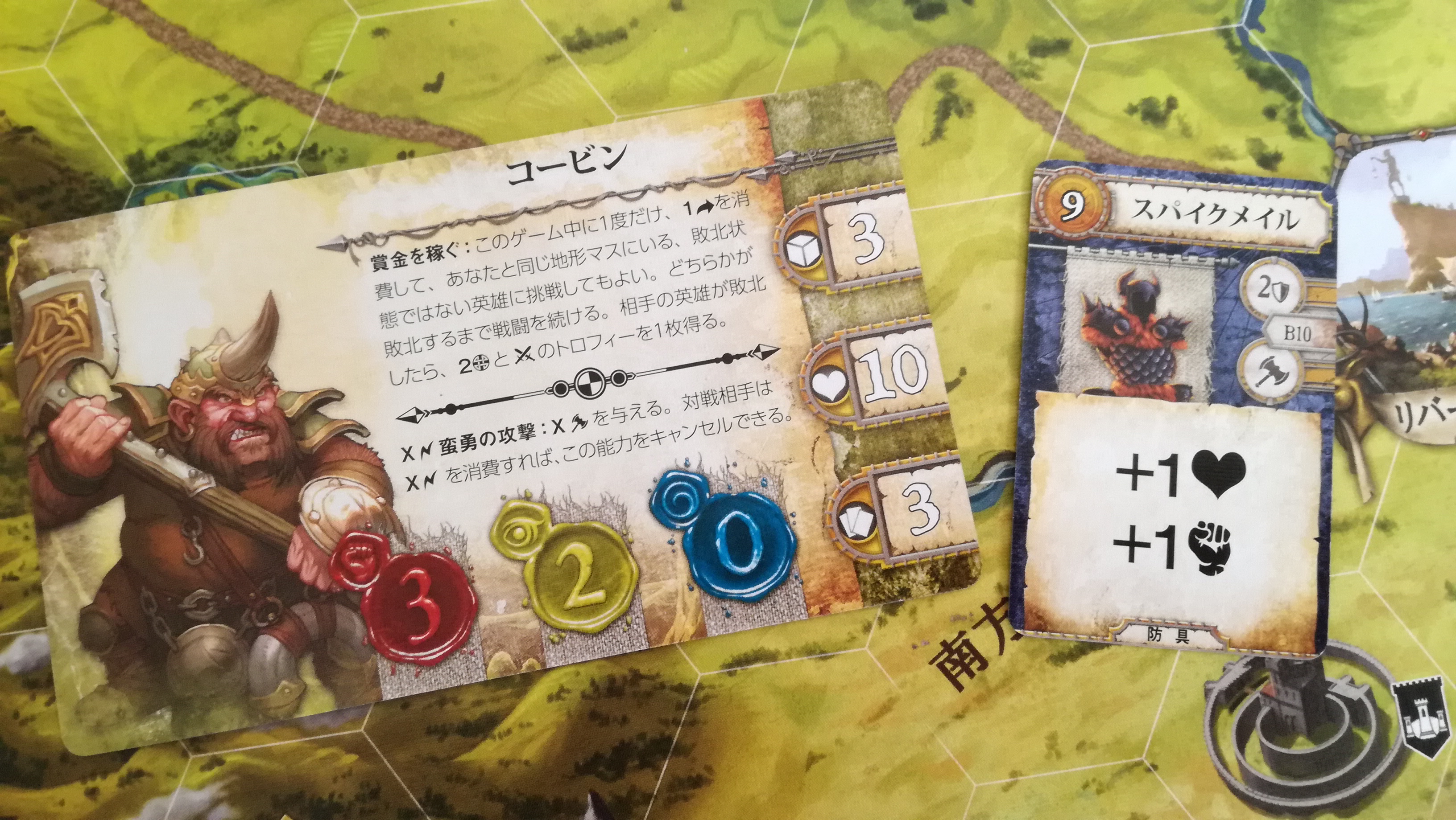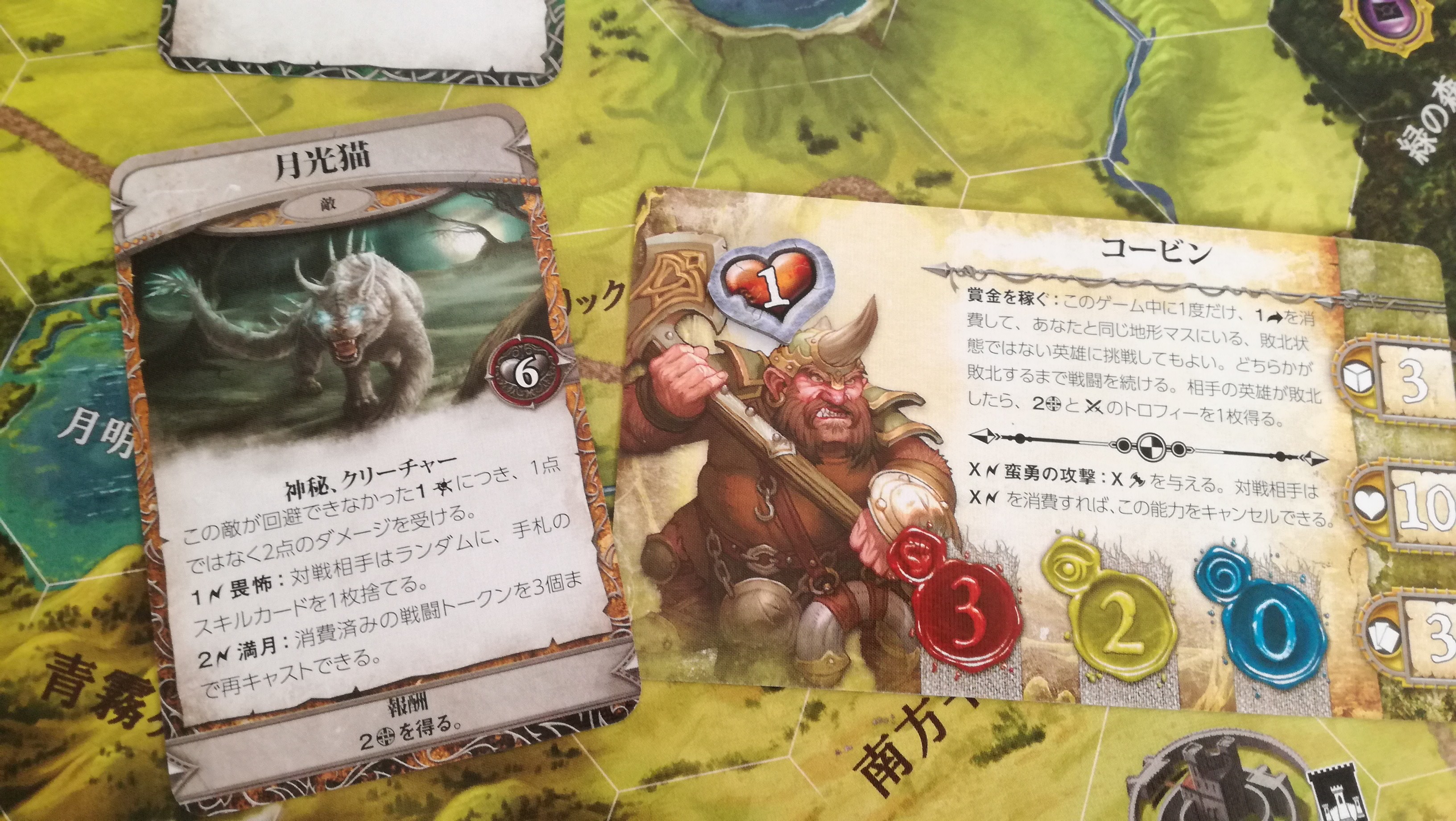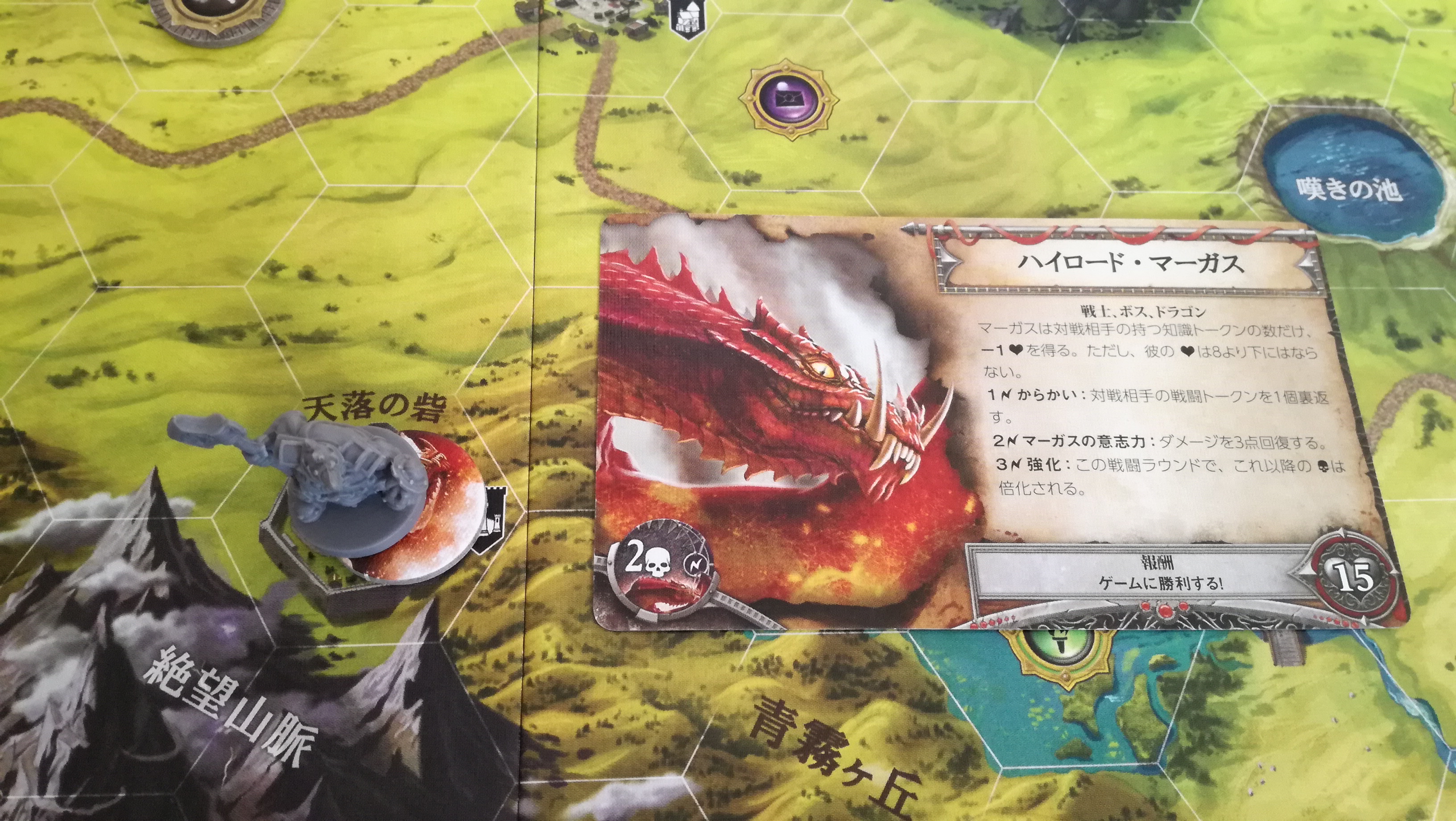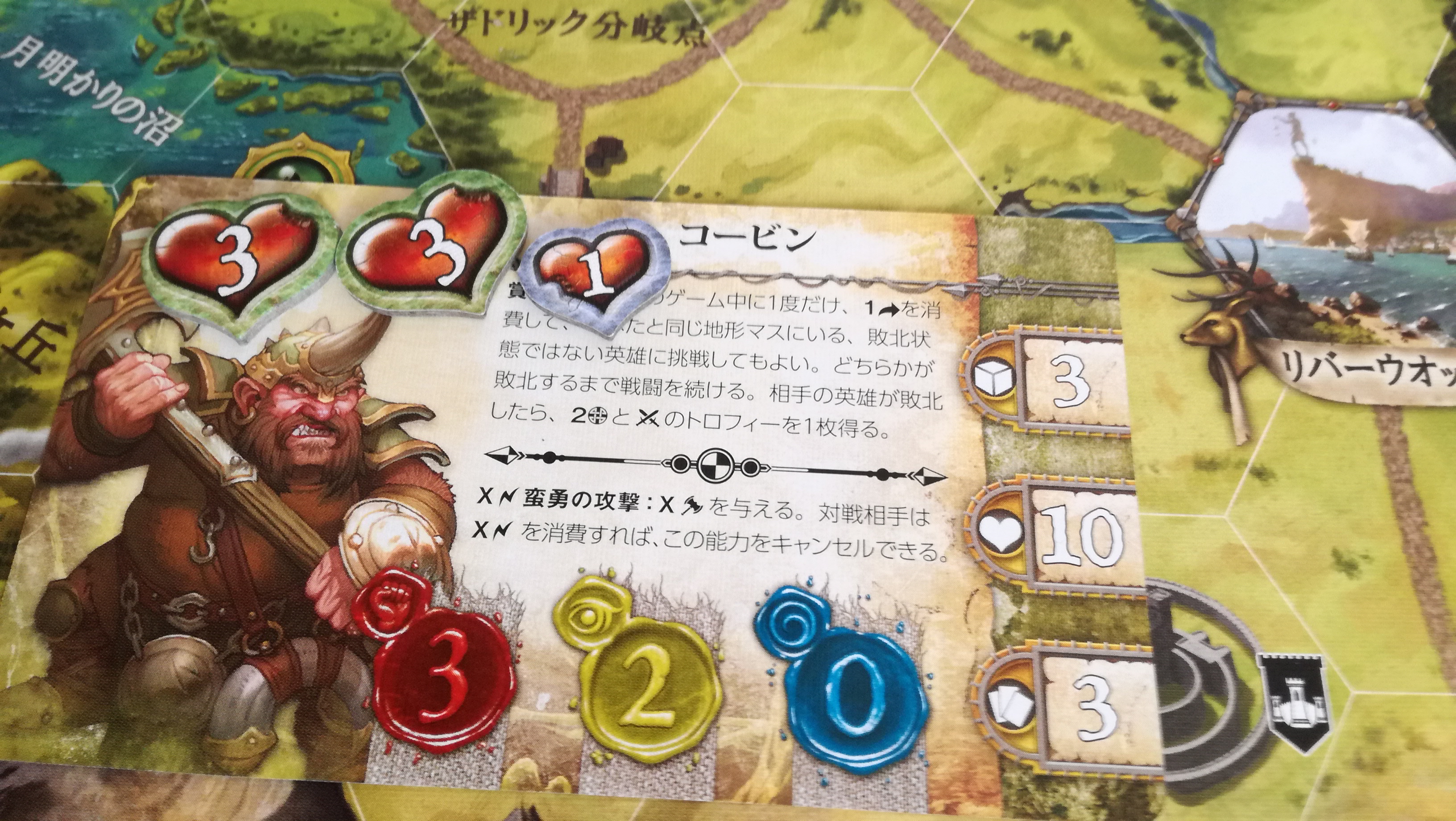 これも地味に勘違いさせる記述です。この『~回復することはできません』は、この戦闘中の事を指すのか?それとも戦闘が終わっても回復することなく、物語トークンの効果だけは累積するのか?。最初は後者と思い歓喜しましたが、よくよく考えると前者っぽいですね…残念。これもハウスルールで後者の物語トークンの効果は継続するようにすれば、協力というか駆け引きが加味されないかな~と思ったり。