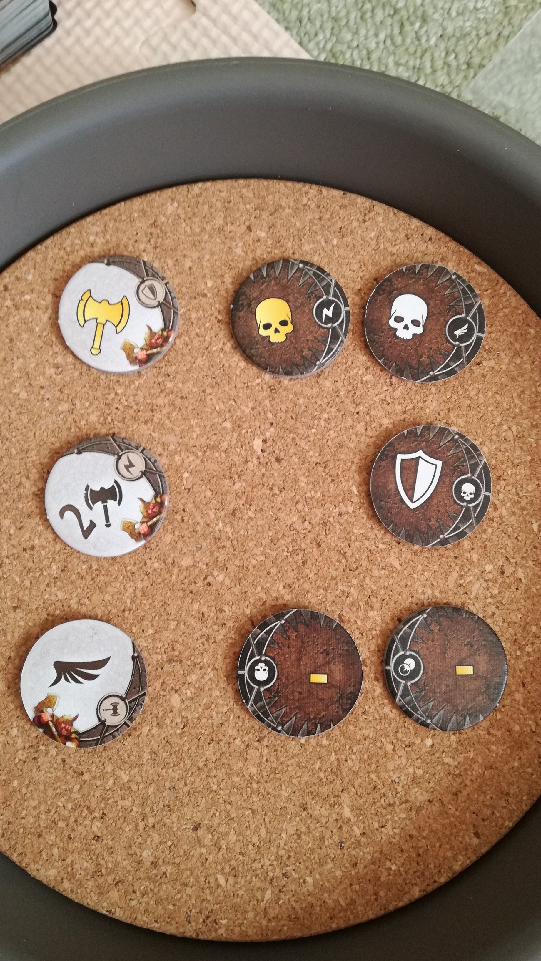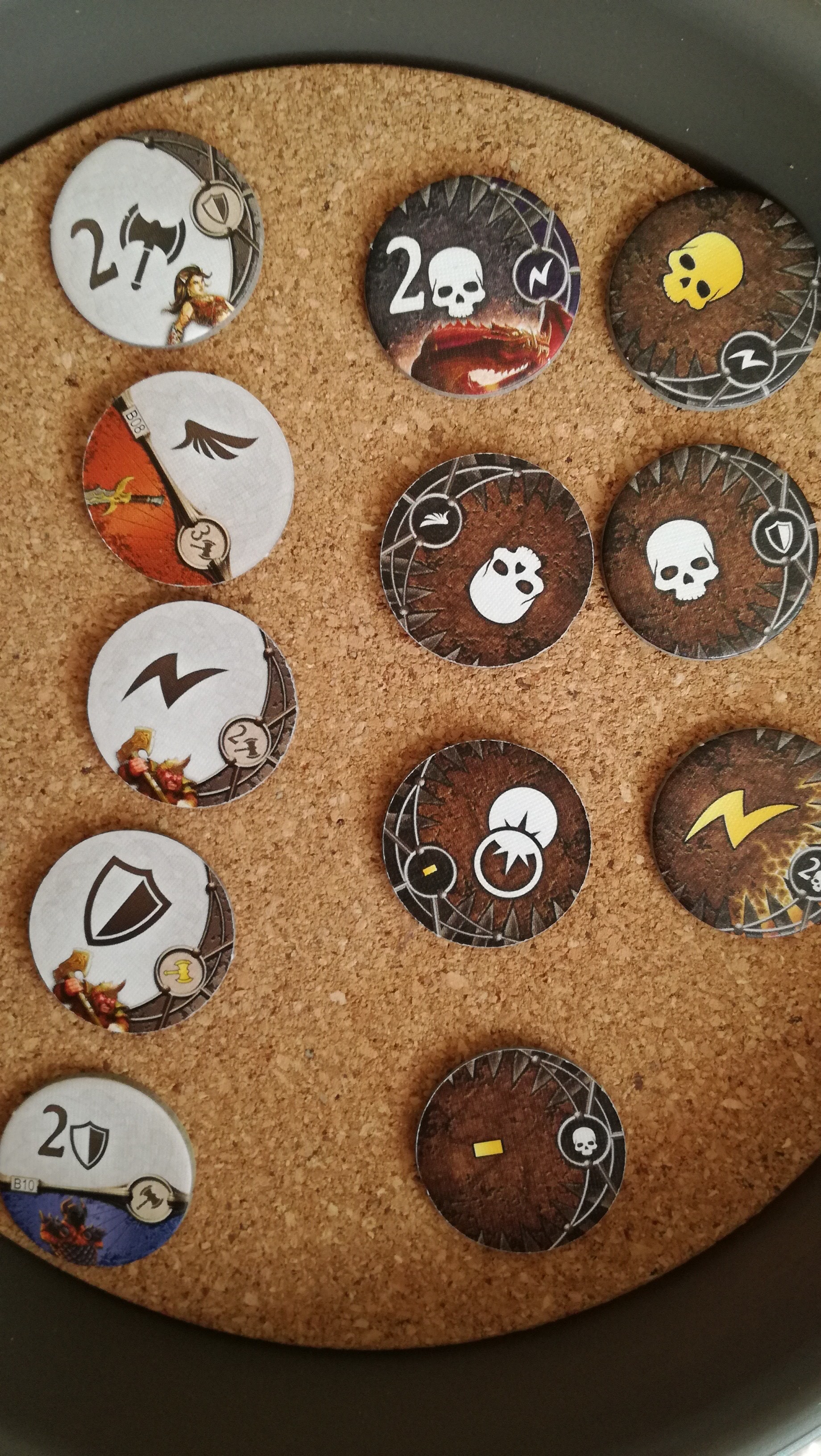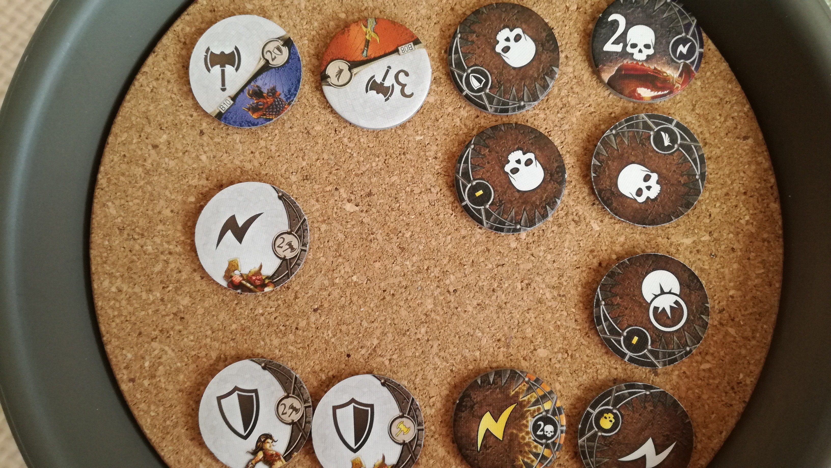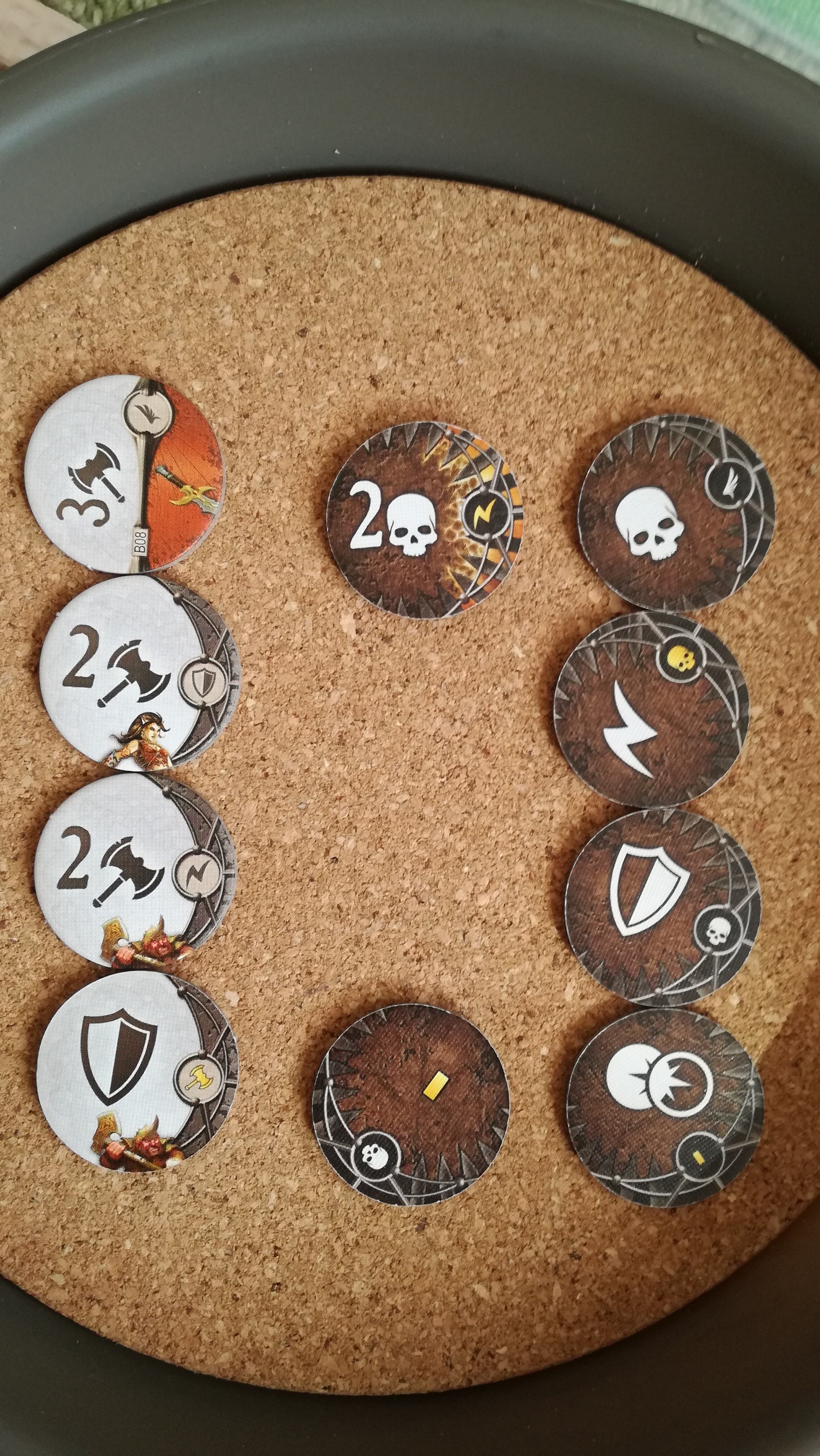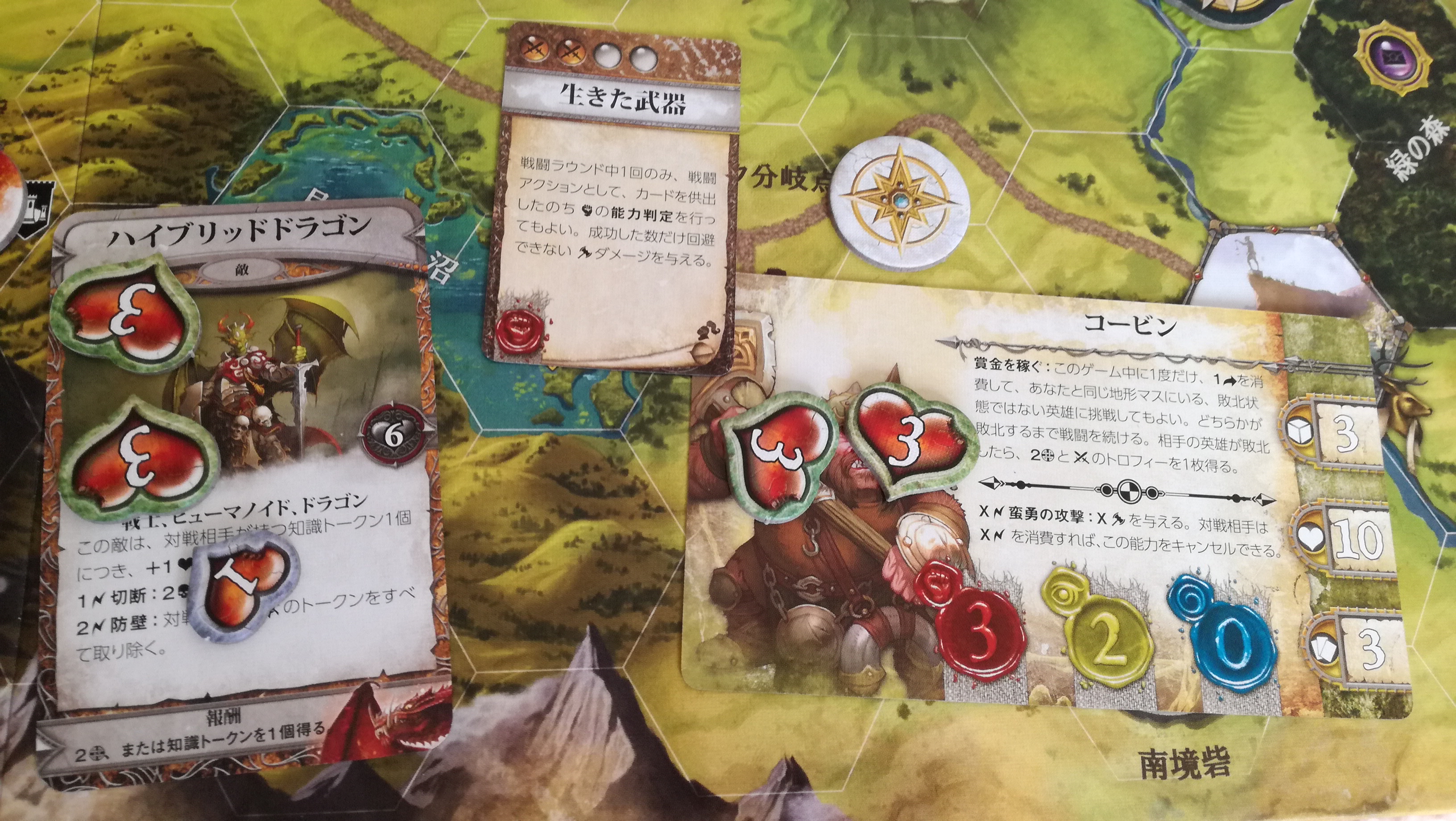 これも地味に勘違いさせる記述です。この『~回復することはできません』は、この戦闘中の事を指すのか?それとも戦闘が終わっても回復することなく、物語トークンの効果だけは累積するのか?。最初は後者と思い歓喜しましたが、よくよく考えると前者っぽいですね…残念。これもハウスルールで後者の物語トークンの効果は継続するようにすれば、協力というか駆け引きが加味されないかな~と思ったり。