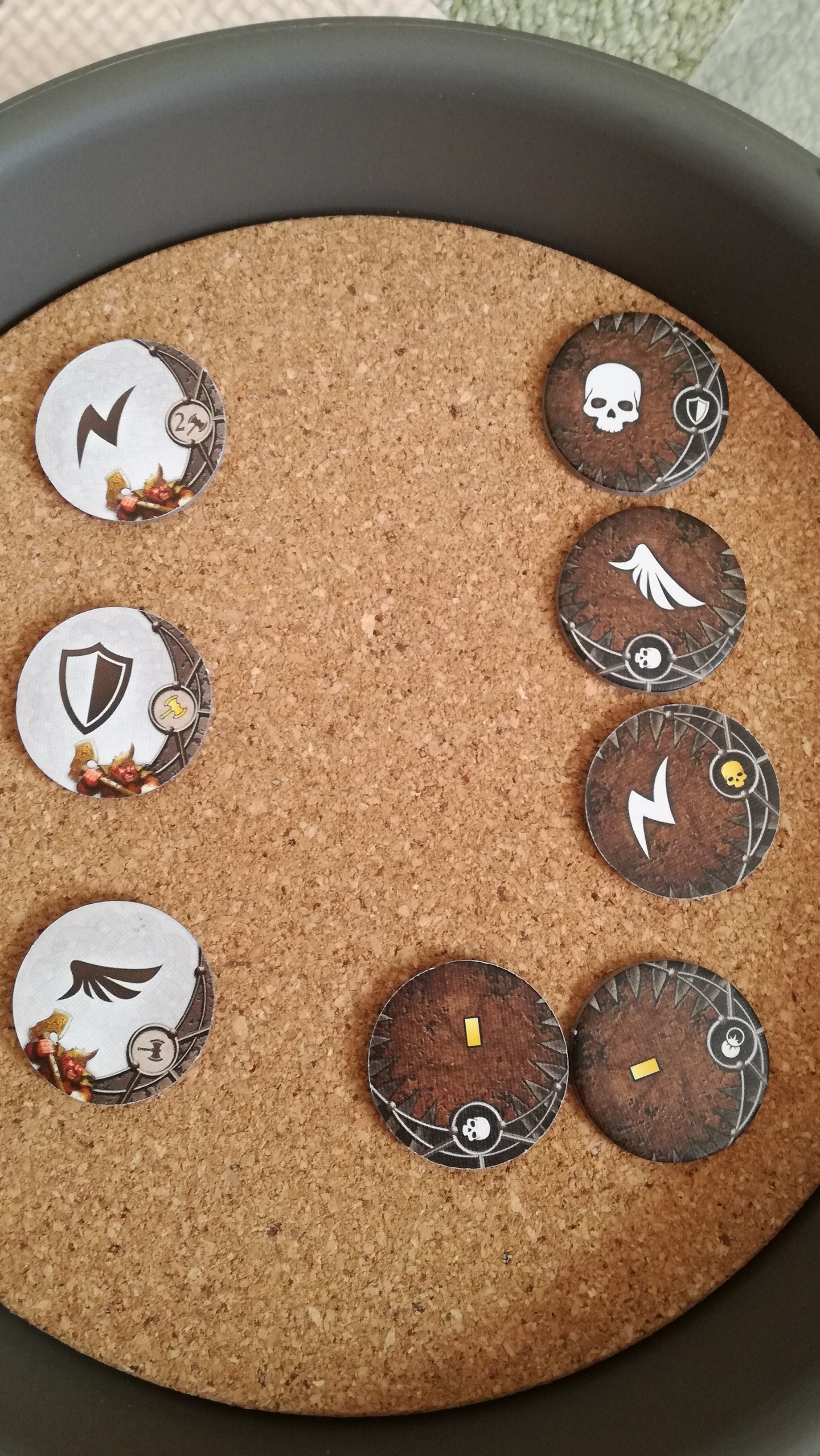 お互いの戦闘トークンをキャスト…結果はまずは、オーガが先攻で『1敵ダメージ(ドクロマーク)』を2枚使用します、