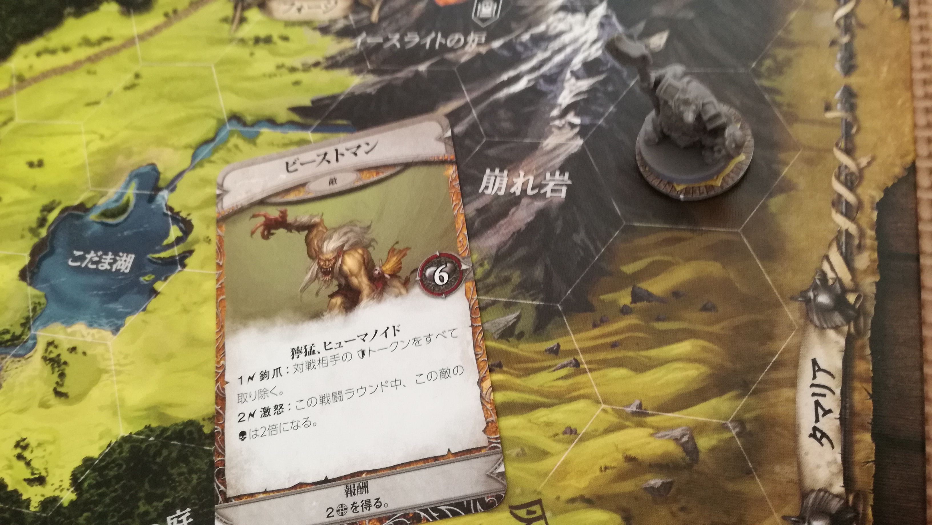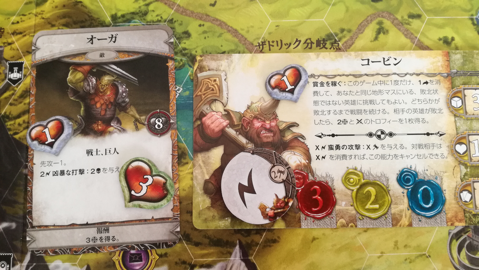 最期にコービンの『波動(波?稲妻?マークのやつ)』能力『蛮勇の攻撃』を使用して、オーガに1点のダメージを与えます。