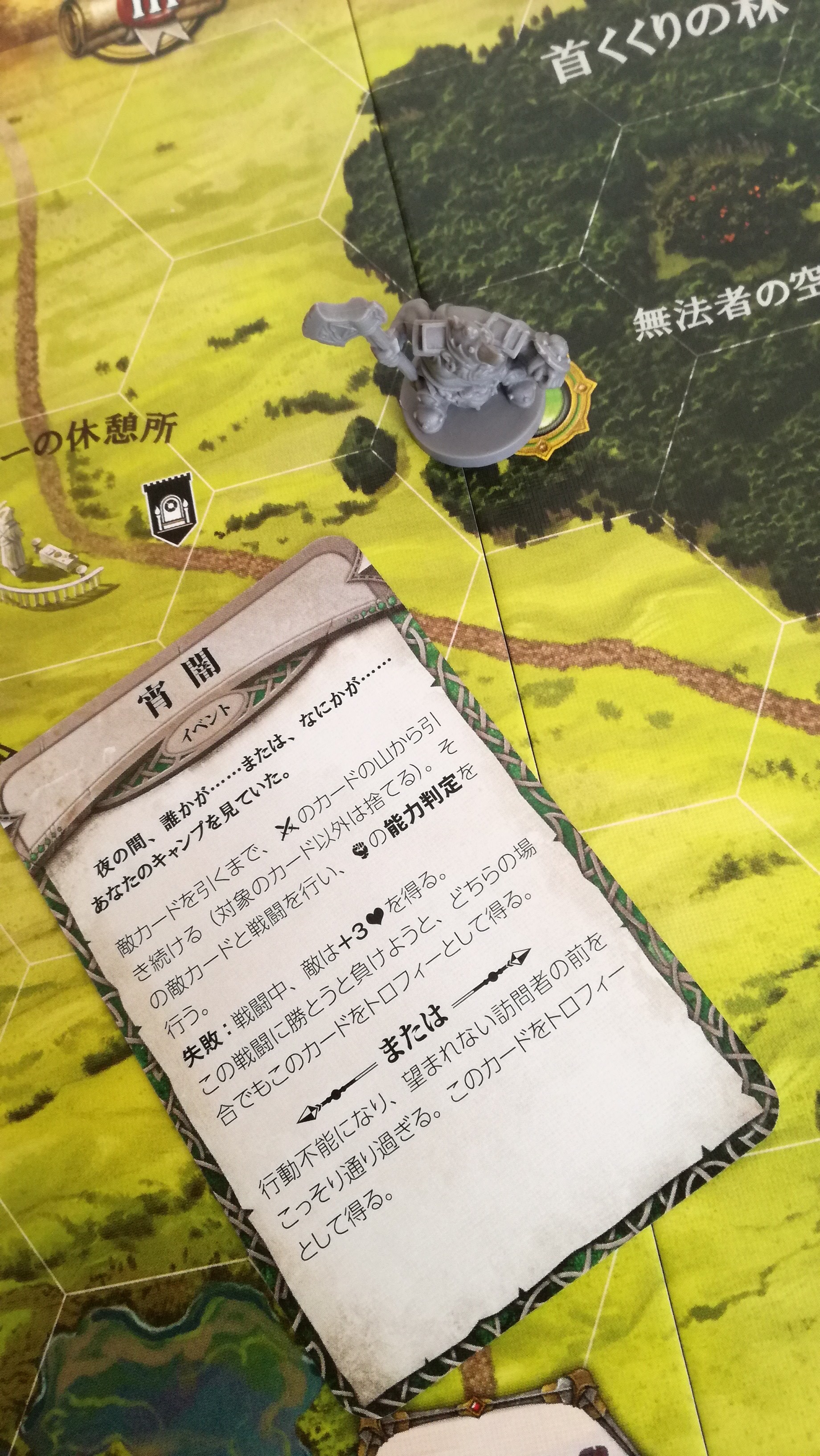 街道を進み首くくりの林の外れ、探索アドベンチャーがあるマスまでやってきます。