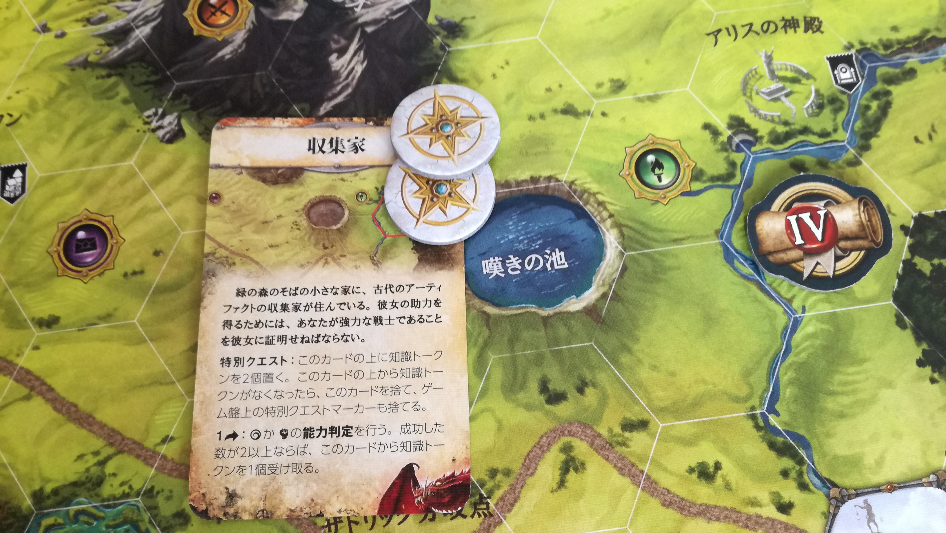 移動→探索アドベンチャーまずは1マス隣へ移動(1アクション)し、探索アドベンチャーを行います(2アクション)。