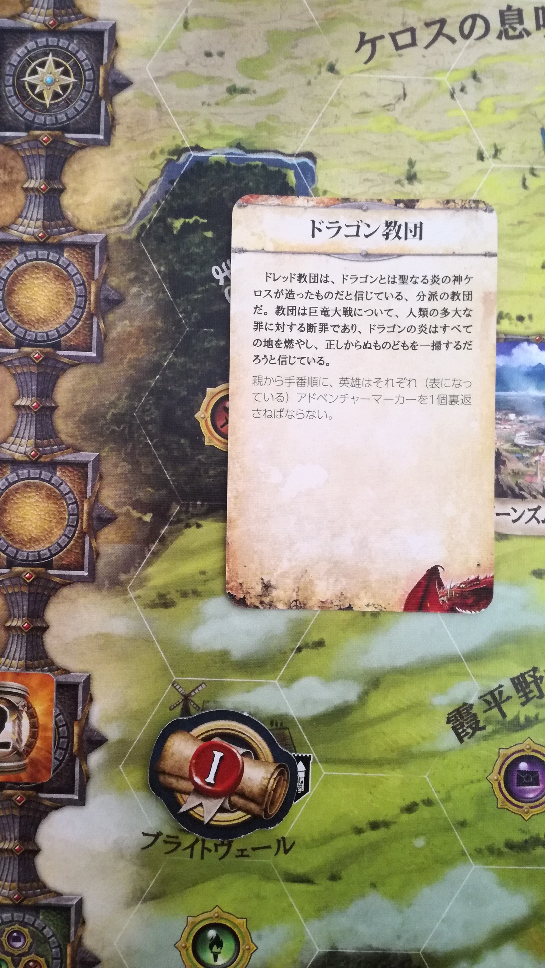 まず、『町、神殿、要塞』ですが説明文の『~移動や調査の上では地形とはみなされません。』という文言が混乱誤解を招くように感じました。『~移動や調査の上では、その背景にある地形を適応してください。』でいいんでないでしょうか? 『都市マスは、あらゆる地形マスとみなします。』と混同しそうですが『都市』のみです。地形ダイスでどの出目が出ても都市へ移動できます。