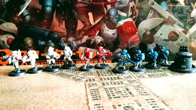 本来のキルチームの行動手順や未行動・行動済みの管理が常務的にまだ負担になるので、将棋的な手順をとっています。